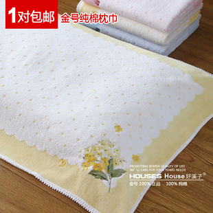 金号纯棉枕巾加大豪华不起球不掉色一对装 家用柔软舒适一对枕头巾