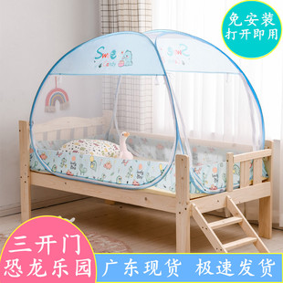 全底三门防摔蚊帐家用卧室免安装 蒙古包婴儿童防掉床纹帐2025新款