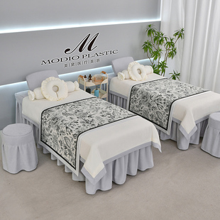 欧式 包邮 美容院按摩床罩 通用 高档美容床罩四件套纯棉棉质简约四季