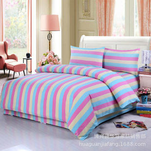 包邮 新款 纯棉条纹老粗布四件套加密加厚双人床单床上用品不起球