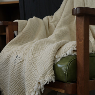 日式 侘寂风全棉四层纱布流苏毯做旧褶皱民宿床尾毯子沙发休闲盖毯