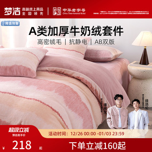 梦洁家纺牛奶绒床上三四件套2025新款 床单被套秋冬加绒珊瑚绒床品
