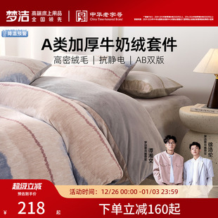 梦洁家纺牛奶绒珊瑚绒加厚加绒三四件套秋冬保暖家用被套床上用品