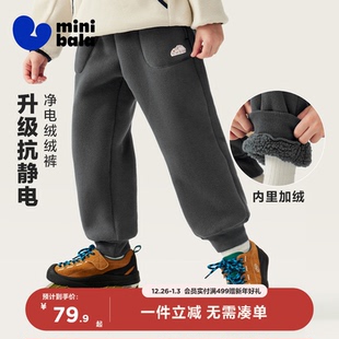 抗静电内里加绒保暖长裤 迷你巴拉巴拉男童女童儿童裤 子2025冬新品
