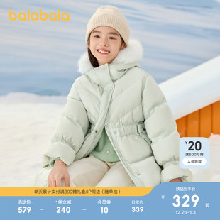收腰加厚保暖外套蓄热防护 中长款 巴拉巴拉童装 儿童羽绒服女童冬季