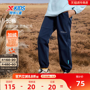 大童三防梭织保暖裤 特步童装 男童加绒户外长裤 儿童运动裤 秋冬新款