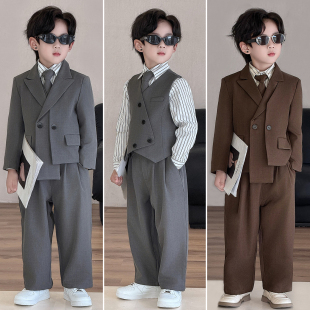 男童礼服2025新款 帅气男孩钢演出西服 儿童英伦风花童小主持人西装
