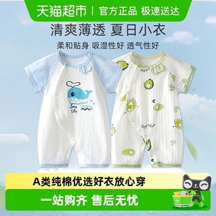 哈衣薄百天新生幼儿睡衣夏装 彩婴房婴儿连体衣服夏季 满月宝宝短袖