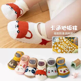 婴儿学步地板袜卡通防滑袜套点胶绑带新生儿童袜室内宝宝学步袜子