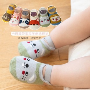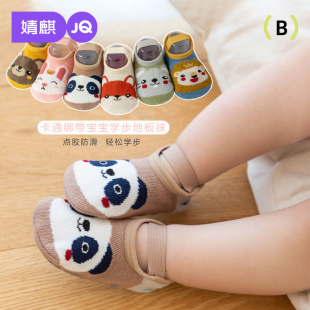 婧麒新生宝宝绑带卡通地板袜春秋季 男女宝宝超萌卡通学步袜子 新款
