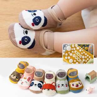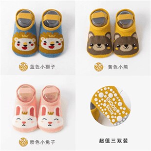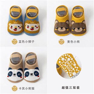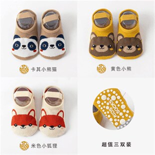 宝宝地板袜秋季 袜 冬天婴儿学步防滑底软底袜套室内儿童带扣地板鞋