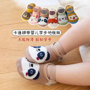 • 婴儿学步地板袜卡通防滑袜套点胶绑带新生儿童袜室内宝宝学步袜子