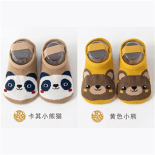 新款 儿童地板袜防滑点胶卡通动物绑带新生婴儿袜室内宝宝学步袜子