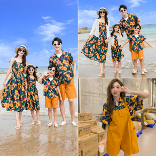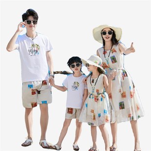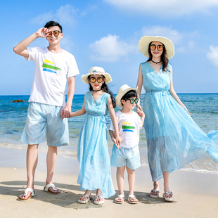 裙洋气夏母子高端海边度假套装 母女装 一家三口四口夏装 沙滩亲子装