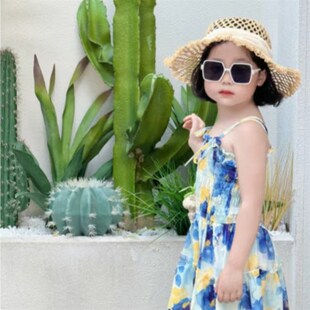 碎花衬衫 网红炸街新款 一家三口港风短袖 夏装 母女吊带连衣裙 亲子装