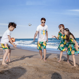 沙滩亲子装 洋气 夏一家三口四口巴厘岛三亚海边度假母子母女裙套装