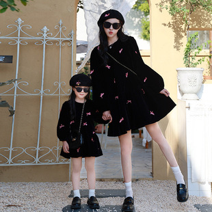• 母女装 新款 连衣裙韩系甜美蝴蝶结丝绒连衣裙 秋季 炸街亲子装