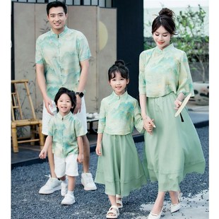 亲子装 中国风汉服一家四口全家福拍照父子高端母子母女马面裙 唐装