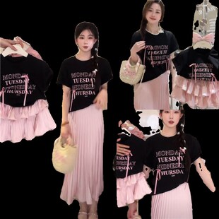 母女裙 日系优雅气质显瘦百褶裙洋气T恤两件套装 2024夏季 亲子装