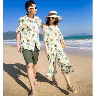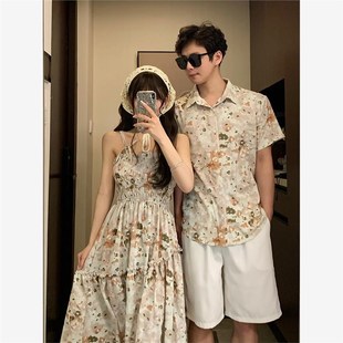 夏装 高端度假母女装 一家三口全家装 衬衫 碎花沙滩裙 短袖 海边亲子装