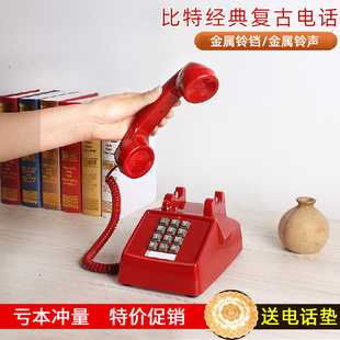比特老式 创意座机古董坐机 仿古电话机复古机械振铃声红色保密时尚