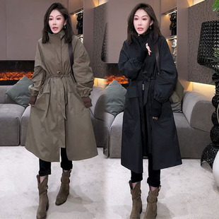 宽松加棉休闲风衣棉服风衣外套 2025新款 欧货黑色中长款 冲锋衣女款