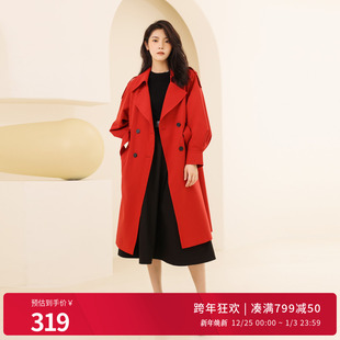 婉甸2025石榴红长款 外套新年限定1241B02SJ1YX 风衣气质款