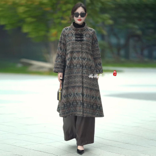 加绒保暖过膝长款 立领显瘦大码 羊毛外套 气质妈妈大衣宽松大码 冬季