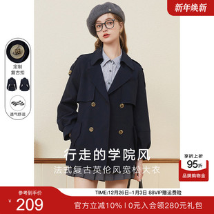 上衣 风衣外套女双排扣收腰系带宽松短款 Eimismosol2025秋季 新款