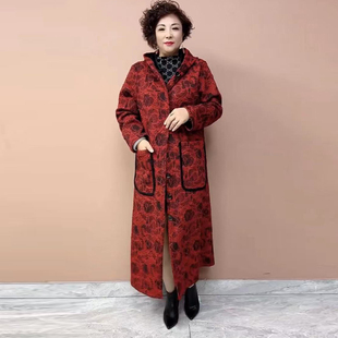 过膝女士大码 保暖大衣连帽长款 风衣 加绒加厚外套冬季 中老年妈妈装