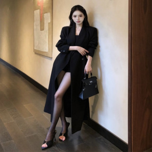 高级感黑色气质风衣外套女秋季 休闲过膝大衣女 御姐风显瘦收腰长款