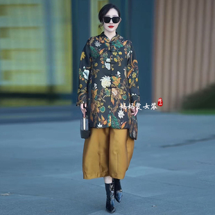 宽松提花风衣外套 唐装 2025秋冬阔太太高端大气国风中式 盘扣中长款