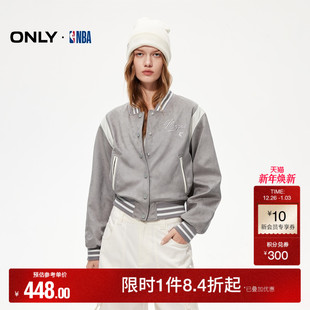 复古棒球拼接刺绣夹克风衣女 NBA合作系列短款 ONLY2025冬季 新款
