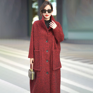 立领外套 大码 高档贵夫人色织羊绒大衣加肥加大码 欧货洋气妈妈长款