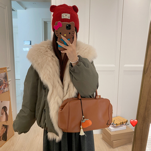 新款 2025冬季 皮草外套女 狐狸毛车条派克服连帽宽松短款 北欧雪季