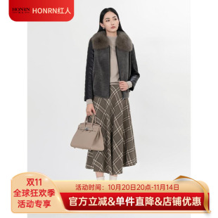 HH55PM520 秋冬季 HONRN 红人休闲狐毛领羊毛皮毛一体夹克外套女款