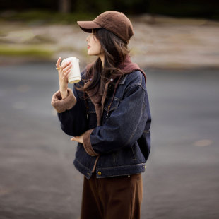 可拆帽休闲通勤百搭加厚牛仔上衣 新款 时尚 仿皮草外套2024年冬季