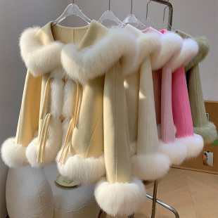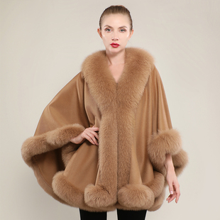 新款 狐狸毛皮草秋冬外套女羊毛羊绒斗篷宽松宴会气场百搭奢华披肩