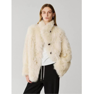 羊羔毛宽松皮毛一体皮草外套 颗粒羊剪绒大衣女中长款 2025冬季 新款