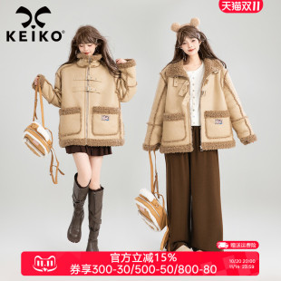 复古皮毛一体皮衣外套冬季 美式 酷感加厚保暖棉服 环保皮草 KEIKO