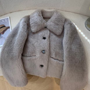 保暖毛毛外套 兔毛皮草外套女真毛皮毛一体多巴胺冬季 2024冬季 新款