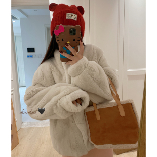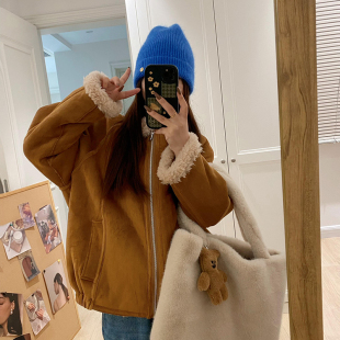 复古杂志 美拉德羊羔毛皮毛一体麂皮绒夹克韩系上衣皮草外套女冬