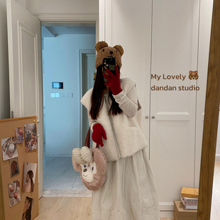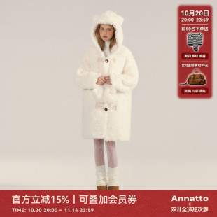 ANNATTO奶油小熊 白色毛茸茸大衣连帽毛毛外套冬仿皮毛一体羊羔毛