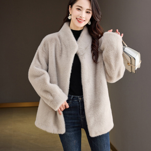 2025新款 皮毛一体外套女韩系秋冬宽松加厚仿水貂环保皮草毛毛外套