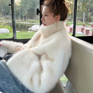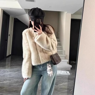 • 2025新款 仿水貂冬小个子宽松百搭环保皮草毛毛外套 皮毛一体女短款