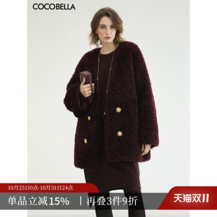 • COCOBELLA25新款 环保皮草无领外套女秋冬泰迪中长大衣FU3107