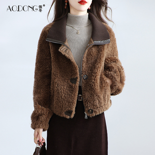羊羔毛大衣冬季 海宁颗粒绒皮草外套女短款 一体保暖翻领加厚年轻款