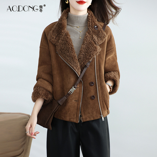加厚麂皮绒保暖夹克羊羔毛大衣冬季 新款 海宁颗粒绒皮草外套女短款