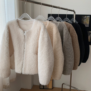 皮草毛毛外套女 100羊羔毛皮毛一体2025新款 韩系圆领拉链款 蝙蝠袖