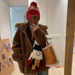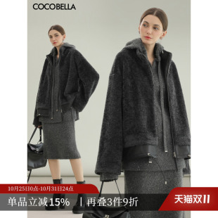 温暖暴击 保暖皮草上衣 双层帽子100羊羔毛皮毛一体毛毛外套女冬季